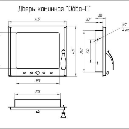 Дверца «Обва» с поддувалом — это стальная дверца для печи или камина с огнеупорным стеклом «ROBAX®».