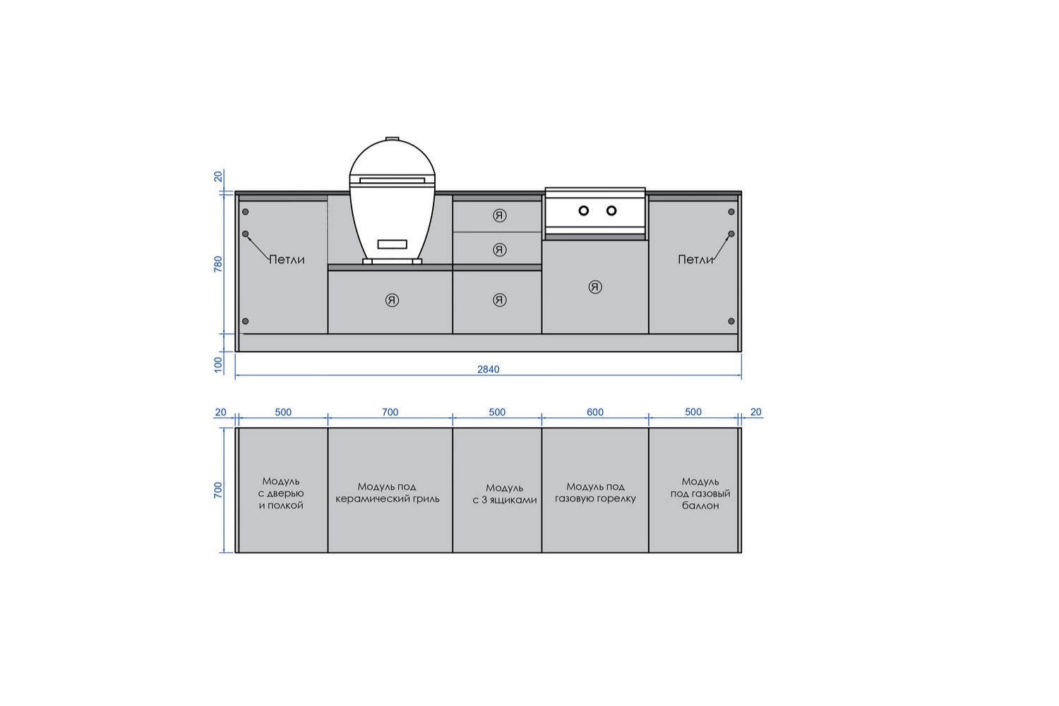 - Модуль под керамический гриль 700 мм