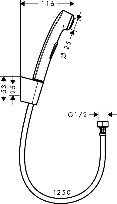 Гигиенический душ со шлангом 1,25 м и держателем, ½'